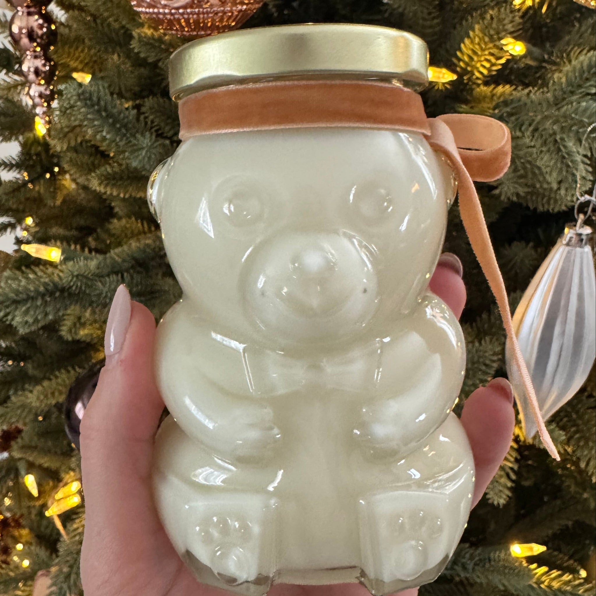 Bring the magic of the holidays home with our Holiday Bear Soy Candles. Each candle features a charming bear design, topped with a festive gold lid and poured with 100% soy wax for a clean, long-lasting burn. Available in two comforting scents : Oatmeal Honey and Pecan Caramel Latte. Perfect for gifting or enjoying all winter long. 9.5 oz | 65 hour burn time
